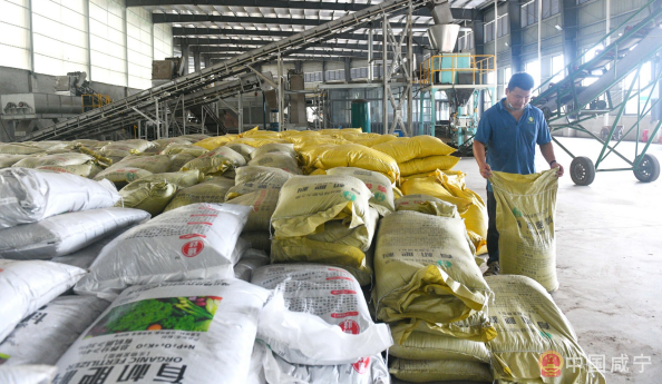 Bags of organic fertilizer were ready for shipment at the packaging workshop of Hubei Suiqi Agricultural Technology Co., Ltd., located in Wanxiu Village, Heshengqiao Town, Xian'an District, September 15.